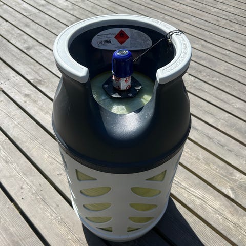 10kg komposiittikaasupullon hylsy, myydään tarpeettomana. Kaasua jäljellä n.viidennes eli vielä riittäisi grillaukseen ennen vaihtoa!😊