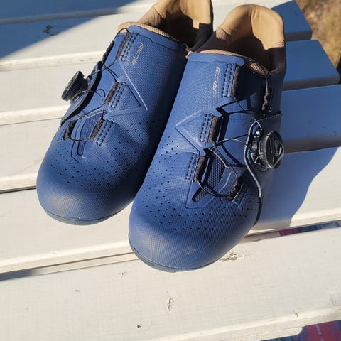Shimano pyöräilykengät, koko 39. Väri punainen ja musta. Kengissä on tarrakiinnitys kolmella remmillä. Pohjassa on paikka lukkopolkimien klosseille. Soveltuvat maantie- tai kuntopyöräilyyn yhteensopivien polkimien kanssa. Kengän sisäpohjan pituus näkyy mitattuna kuvassa ja käy varmaankin 37-39 jalkaan ja sovittamalla selviää. Kenkiä ei ole käytetty.