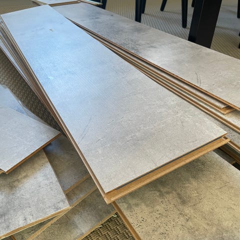 Vuoden vanha laminaattilatia harmaalla puukuosilla. Lankut ovat puukuviollisia ja sävyltään vaaleanharmaita. Sopii esimerkiksi asuinhuoneiden ja käytävien lattiamateriaaliksi. Kuviointi muistuttaa luonnollista puunsyykuviota ja antaa yhtenäisen ilmeen lattialle.
