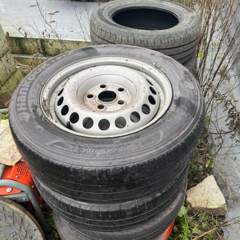 Myydään 16" Volkswagen Transporter Peltivanteet kesärenkailla. Renkaissa heikosti pintaa jäljellä