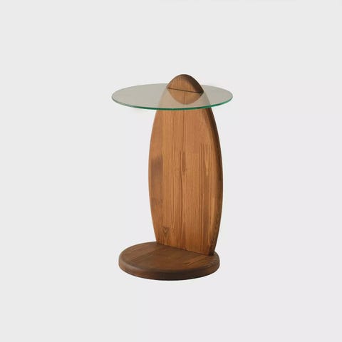 Chesnut ja Läpinäkyvä Sivupöytä - 100% Karkaistu Lasi, Mäntyrunko, 35x53x3