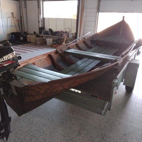 Vanerilauta vene. Hyvä kuntoinen. Tervattu ja huollettu ajallaan. Leveys 160 cm. Pituus 530 cm. Sopi 20-30 hp moottorille.