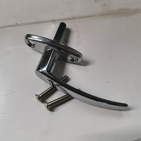 Valkoiset ikkunakahvat metallisella kiinnitysosalla. Sopivat ikkunan avaamiseen ja sulkemiseen, kahvoissa suorakulmainen muoto ja metallinen neliöakseli kiinnitystä varten. Materiaalina muovi tai maalattu metalli, väri valkoinen. Soveltuvat käytettäväksi esimerkiksi sisäikkunoissa tai parvekeovissa, joissa on vastaava kiinnitysjärjestelmä.