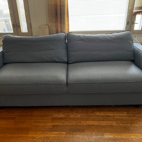 Pientä käytön jälkeä on, joista kuvat, mutta yleisilmeeltään on siisti sohva. Sohva on puhdas eikä tahroja ole.