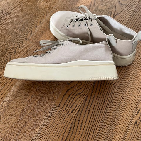 Myydään Vagabond Shoemakers tennarit, koko 38. Vähän käytetyt, max.10 kertaa. Valkoiset nahkaiset nauhakengät, joissa paksu kumipohja ja vetolenkki kannassa. Sisäpohja nahkaa. Sopivat arkikäyttöön ja vapaa-aikaan.