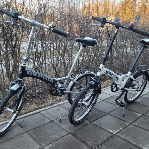 Matkailuautoilun loputtua myydään 2 kpl 5-vaihteisia Yosemite taittopyöriä 20" renkailla. Vaihdettu mukavammat satulat, renkaat hyvät. Hyvä kunto ja kaikki toimii. 70€/kpl tai 120€ yhdessä.