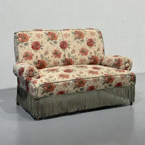 Hakusanat: klassinen, kukkakuvio, hapsut, käytetyt huonekalut, vintage huonekalut, sohva, emma ranska sohva, sohvat, antiikki, vintage, retro, vanha, luvun, luku, huonekalu, huonekalut, koristeellinen