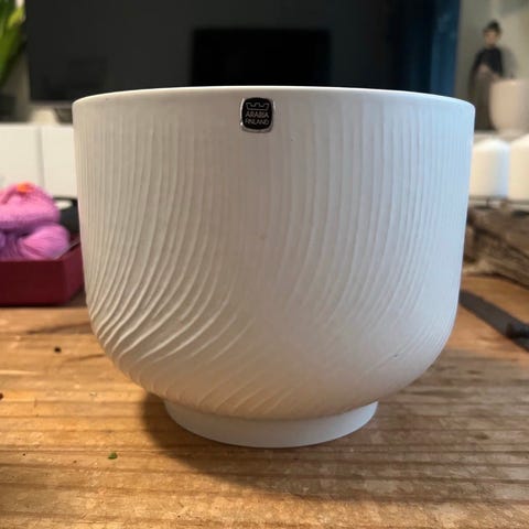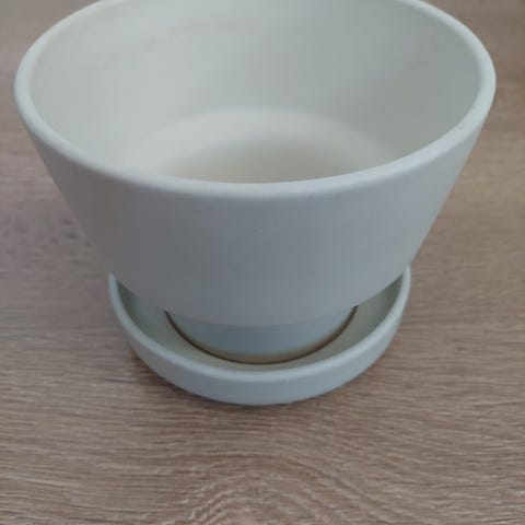 Arabia iso kukkaruukku aluslautasella vihertävä keramiikka