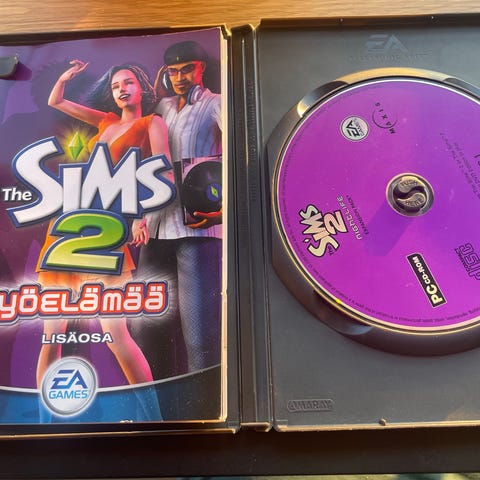EA The Sims 2 PC-peli. Pakkaus sisältää alkuperäisen kotelon ja pelilevyn. Peli on tarkoitettu PC-tietokoneelle (DVD-ROM). Ikäraja PEGI 7. Kotelon takakannessa on järjestelmävaatimukset ja lisätietoja pelin sisällöstä suomeksi.