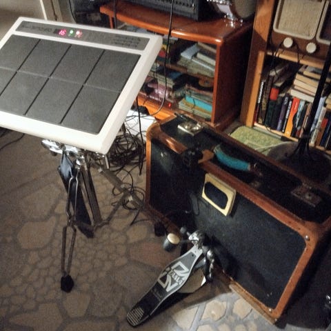 Vanhat, mutta toimivat Rolandit, Mapex tuplapedaalilla.