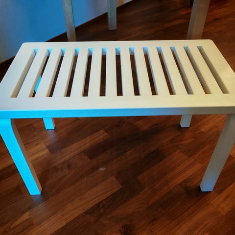 Vanha Artekin ritiläpenkki. Patinaa ja mustikkatahra löytyy, mutta muuten hyvässä kunnossa.