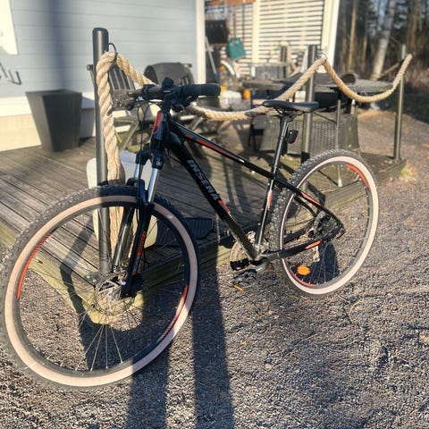 Crescent maastopyörä unisex-käyttöön. Rungon koko on L ja pyörässä on 29" kiekot, jotka soveltuvat maastoajoon ja vaihtelevaan maastoon. Pyörä on suunniteltu sekä naisille että miehille. Kuvasta näkyy suoralla tangolla varustettu runko, etujousitushaarukka sekä levyjarrut edessä ja takana. Pyörässä on vaihteisto monipuoliseen ajoon sekä maastorenkaat soralle ja poluille.