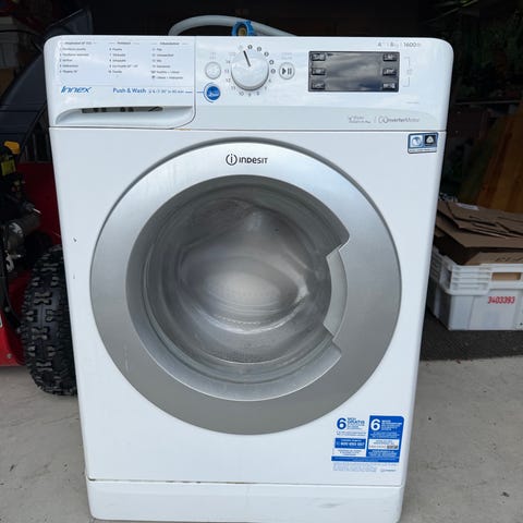 Toimii, mutta ei voi laittaa 1 painavaa pestävää vaatetta, koska ei ole vahvat rummun jouset sellaiseen.