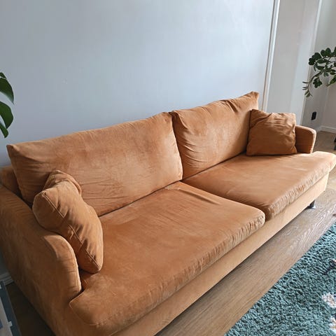 Sohva on tilava ja todella mukava istua ja nukkuakin.