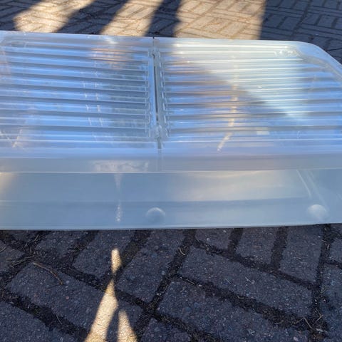 Sängyn alle isohko laatikko. Näitä saa toisenkin jos haluaa. Kappaleelta 5 euroa.