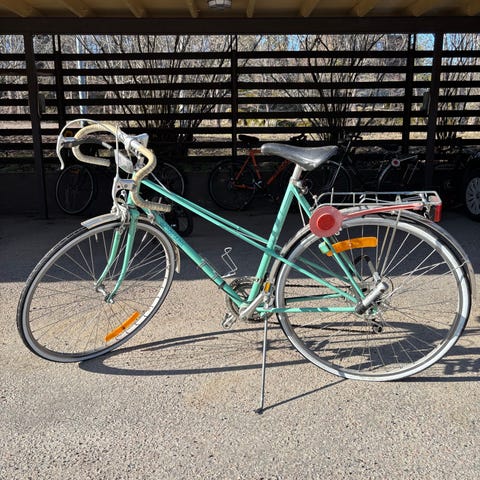 Koko: S/M. Sopii parhaiten n. 165–175 cm kuskille. Itse olen 167 cm ja pyörä on ollut oikein hyvä ja mukava ajaa.