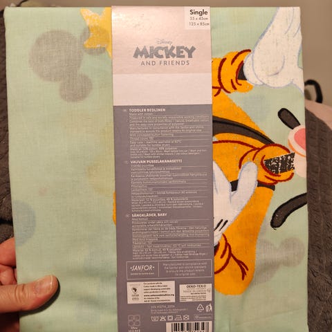 Käyttämättömät, kaapissa ollut lasten pussilakanasetti. Tyynyliinan koko 35x45cm ja pussilakana 85x125cm