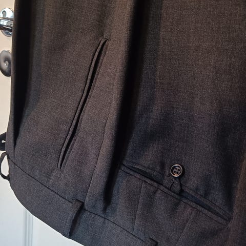 Miesten housut koko B 152. Sergio Albani. Mittoja pituus 113cm, vyötärön ympärys 91 cm ja lahkeen suu 23 cm. 70 % polyesteri ja 30% villa. Erittäin hyvät, siistit.