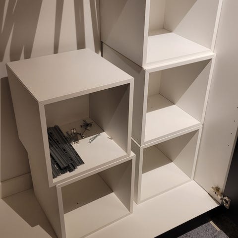 2kpl hyväkuntoisia Ikean Eket seinäkaappeja ovella.