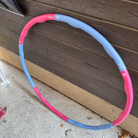 Voimapyörä hulavanne aikuisten käyttöön. Vanne on vaaleanpunaisen ja mustan värinen ja koostuu useasta yhteen liitettävästä osasta, mikä helpottaa kuljettamista ja säilytystä. Sopii esimerkiksi keskivartaloharjoitteluun ja kotikuntoiluun.