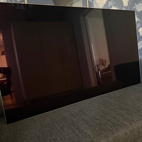 Näytössä on ilmeisesti taustavalojen kanssa jotain ongelmaa kun vasen puoli kuvasta näyttää hieman sinertävältä. Osaava saa tuon korjattua mutta ei vaikuta suuresti kuvanlaatuun. Muuten toivima peli ja mukaan tulee alkuperäinen kaukosäädin + virtajohto.