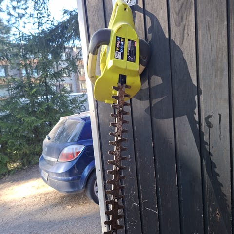 Ryobi RHT6560RL pensasleikkuri 650 W. Pensasleikkuri ollut todella vähällä käytöllä ja aina lämpimässä varastossa. Edelleen todella toimiva ja tehokas leikkuri.