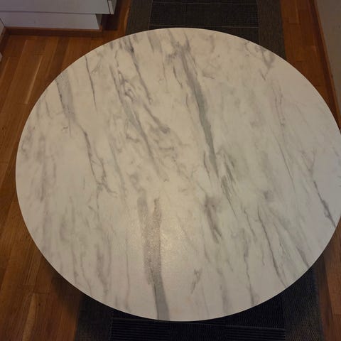 Siistikuntoinen boconceptin sohvapöytä mihin vaihdettu pinnijalat. Pöytälevy on pähkinäviilua. Halkaisija 95 cm korkeus 41 cm pöytälevyn paksuus 5,5 cm