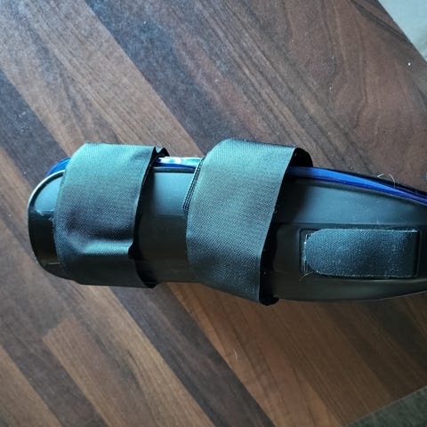 Sininen ergonominen niskanvenytyslaite. Valmistettu pehmeästä materiaalista, muotoiltu tukemaan niskaa ja päätä. Soveltuu käytettäväksi esimerkiksi lattialla, sohvalla tai sängyllä lepäämisen ja rentoutumisen aikana. Muotoilu auttaa pitämään pään paikallaan ja venyttää niskaa.