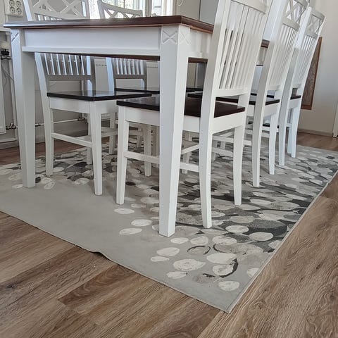 Kuvan mukainen ruokapöytä myynnissä, toisessa kuvassa näkyy pöydän pinta, siisti. Muutaman vuoden ollut käytössä, nyt säilytetty sisävarastossa.