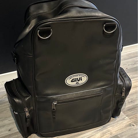 Aika paljon kuljettanut elämänsä aikana tavaraa. Vielä toimiva kuitenkin. Mukaan 2 kappaletta vaihtokuoria, joita joskus maalatti