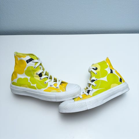 Converse Chucks Marimekko Limited Edition koko 38. Kunto on tosi hyvä ja jäivät vähälle käytölle kun todettiin pieneksi. Hieman perus kenkiin tulevaa värjäymää löytyy. Unikko: valkoinen, pinkki, keltainen, oranssi ja vihreä. 🌼