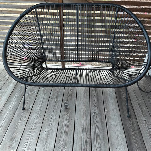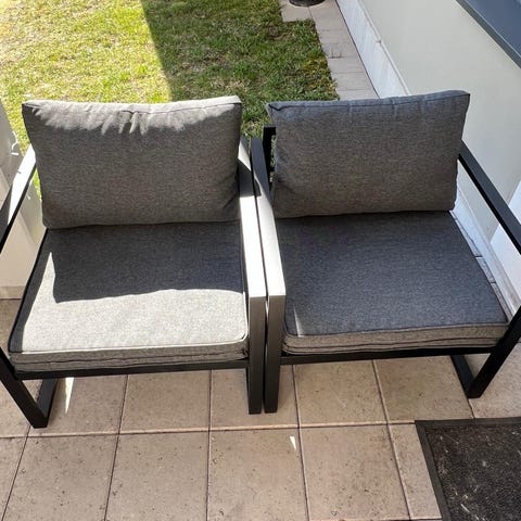 Myydään alumiinirunkoiset terassikalusteet. Kahden istuttava sohva, kaksi tuolia ja pöytä. Ostettu useampi vuosi sitten Bauhausista.