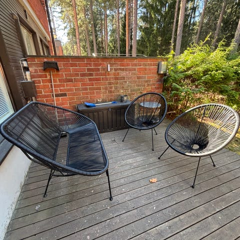 Hyväkuntoiset kalusteet, pehmusteineen.