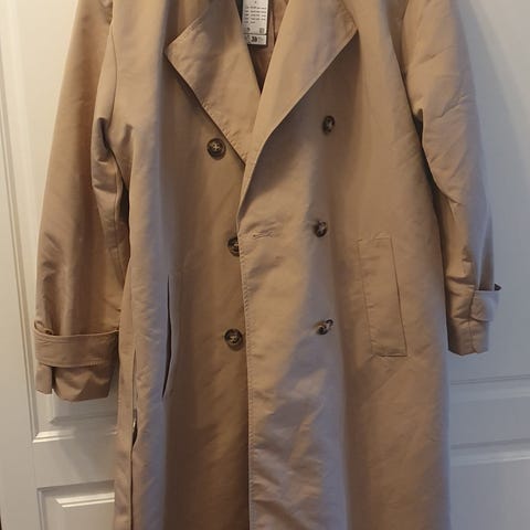 Myydään upea selkeälinjainen, ryhdikäs ja helposti monen tyylin kanssa toimiva J.A.P Companyn musta trenssitakki koossa 36, joka istuu siististi, mutta ei näytä liian jäykältä.