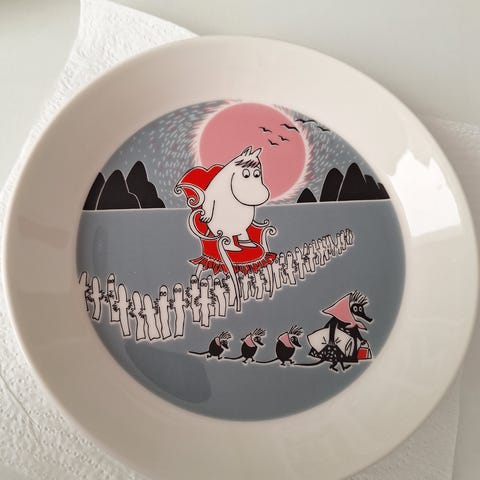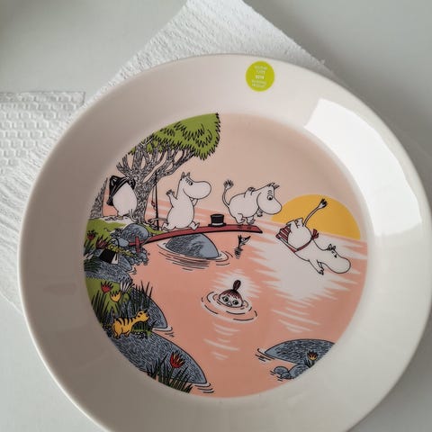 Muumi lautanen Loikoilua