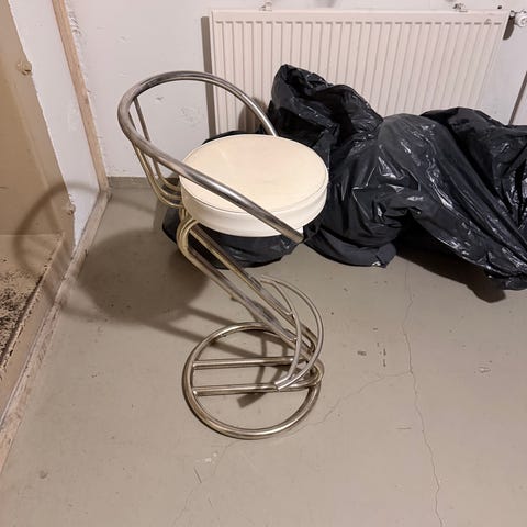 Käytetty musta baarijakkara, istuimen läpimitta 30cm. Korkeus 66cm.