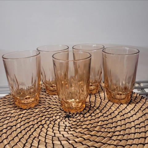 Lasit on ehjät, mutta jonkin verran väriä lähtenyt tms. pikkuvirhettä osissa laseja.