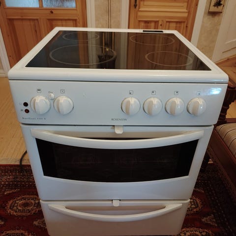 Rosenlew kotiliesi 50, jossa keraaminen keittotaso neljällä keittoalueella. . Alhaalla on vetolaatikko uunipeltien ja vuokien säilytykseen. Vetolaatikon kahva vasemmalta puolelta rikki, mutta voi esim. liimata. Myydään suoraan mökiltä Korpilahdelta (Moksi).