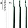 Korkealaatuista terästä. Toimiva ja stabiili rakenne. Terä ja varsi valmistettu yhdestä kappaleesta. Optimaalinen pyörintätarkkuus. Samanaikaisesti kova ja elastinen materiaali kestää pitkään käytössä. Metallin, ei-rautametallien, muovin, piirilevyjen, pehmeän ja kovan puun työstöön. Pyörimisnopeus: pehmeä materiaali n. 8.000 1/min, kova materiaali n. 3.000 1/min. Varren läpimitta 2,35 mm.