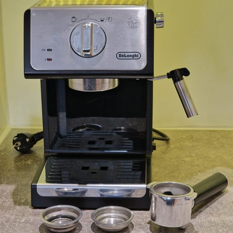 Myyntiin hyväkuntoinen De'Longhi Eletta Cappuccino Top espressokeitin/kahvikone. Täysautomaattinen kahvikone integroidulla kahvimyllyllä ja maitosäiliöllä (maitosäiliön pilli uusi ja käyttämätön). Etupaneelissa painikkeet mm. espresso-, cappuccino- ja latte macchiato -juomille sekä valikko juomien asetusten säätöön. Laitteessa erillinen höyrysuutin, tippakaukalo ja ritilä, johon mahtuu useita kuppikokoja. Väri musta ja ruostumaton teräs.