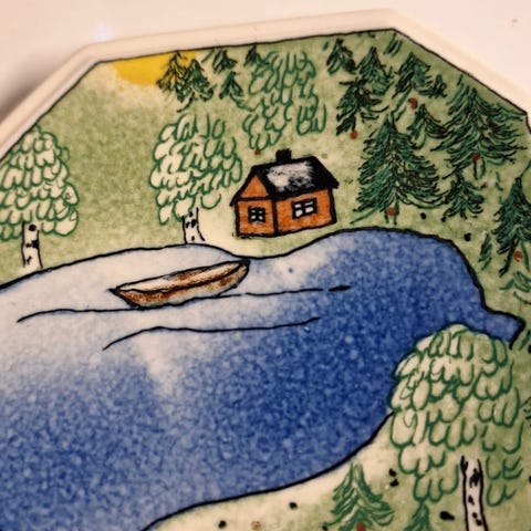 Arabian Finnairille tekemä tilaustyö. 8-kulmainen 15 x 15 cm. Summer midnight sun.