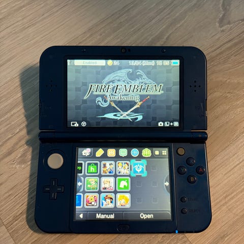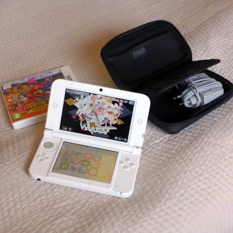 Nintendo 3DS XL pelikonsoli. Kannettava pelikonsoli, jossa suuremmat näytöt kuin perusmallissa Nintendo 3DS. Myyntipakkauksessa näkyy alkuperäinen laatikko ja virtalaturi. Soveltuu Nintendo 3DS -pelien pelaamiseen sekä useiden Nintendo DS -pelien kanssa yhteensopivaksi. Ikäsuositus PEGI 7, kuten pakkauksessa ilmoitettu.