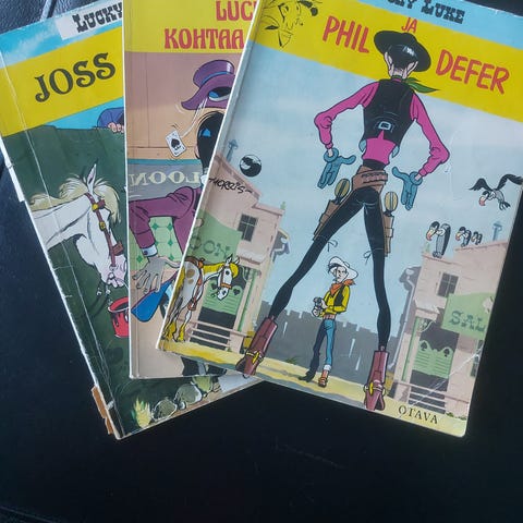 52 kpl Lucky Luke sarjakuvakirjoja sekä 4 muuta sarjakuvakirjaa. Tarjoukset huomioidaan.