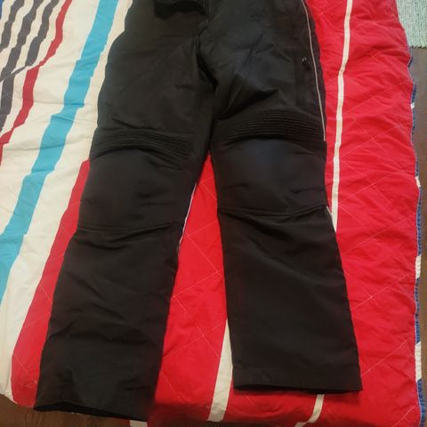 Mustat MP Asun housut, joissa erillinen toppavuori. Housuissa on henkselit, vyötärön säätömahdollisuus ja lahkeissa levennetty malli, joka helpottaa pukemista . Irrotettava toppavuori tuo lisälämpöä kylmempiin olosuhteisiin. Luvattiin ostaessa että ovat vedenpitävät, Gore Tex tyyppiä.
