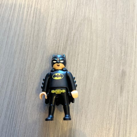 Kinder Batman-muovihahmo, musta. Pieni lelufiguuri, jossa on Batman-aiheinen asu ja logo rinnassa. Sopii leikkeihin tai keräilyyn. Materiaalina muovi. Mukana pieni kuvallinen pakkaus-/esitelehti.