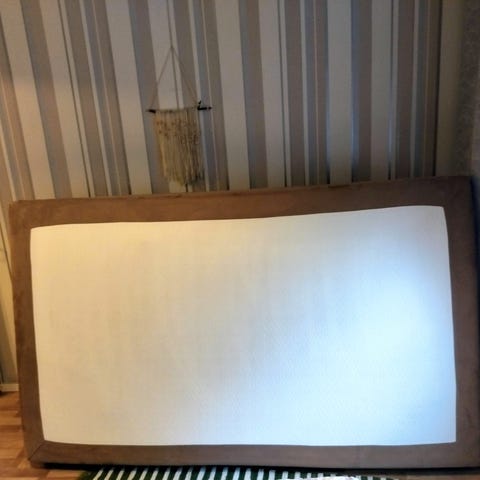Käytetty runkopatjasänky. Päällä 4 pientä reikää. Tumman ruskeat pois ruuattavat jalat.