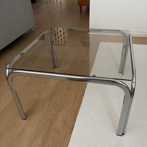 Kansi tummaa lasia joka täysin ehjä, jalassa pieni jälki