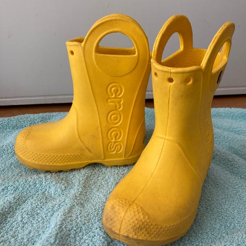 Crocs lasten keltaiset kumisaappaat unisex-mallina, erittäin hyvässä kunnossa.