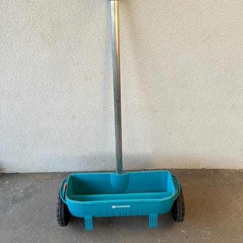 Gardena levitin kävelymallinen. Soveltuu esimerkiksi hiekan, suolan tai lannoitteen tasaisempaan levitykseen piha- ja pihakäytäväalueilla. Leveys 45cm. Kerran käytetty ja nyt varastosta myyntiin.