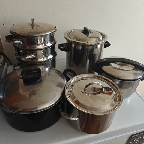 Hyväkuntoisia, vähänkäytettyja kattiloita.